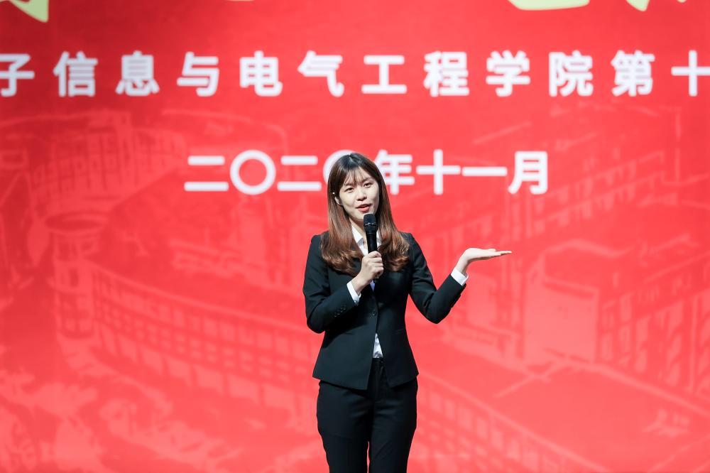 本次运动会特色巡游中,电院方阵由电院智能车实验室的无人小巴领衔。方阵由70名学生组成,电院党委副书记李劲湘带领全阵学生,迈着整齐划一的步伐走向主席台。