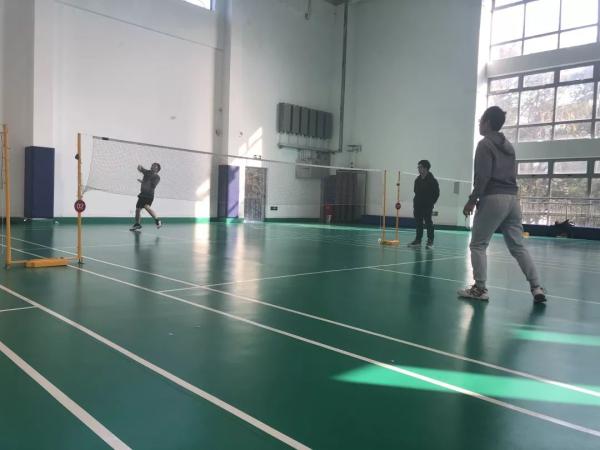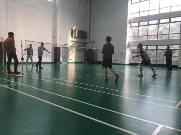 像是特意为了今天的比赛,在连续一周的阴雨天之后,天气终于放晴了。虽说比赛在室内进行,空气依然寒冷,但明媚的天气还是让大家的心情更加舒畅,活力十足。中午12点半,老师们开始陆陆续续赶到比赛场地了。和平时忙于51风流和教学的形象不同,今天的老师们一身利落的运动服,穿着专业的运动鞋,甚至都带着自己专用的羽毛球拍,显得干练、充满活力又斗志昂扬,到场馆没多久,便纷纷活动起来。简单的热身和练习之后,下午一点,比赛正式开始。从1号场地到5号场地分别同时进行女单、女双、混双、男单和男双的比赛。