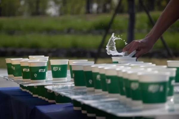 清晨6:00,分布在15公里赛道沿途的饮水站,志愿者们坚定奉献的身影闪耀动人。在安置桌子、摆放桌布、准备饮水饮料、套垃圾袋等一系列井然有序的工作后,他们亲手构筑起运动员们的饮水“长城”。