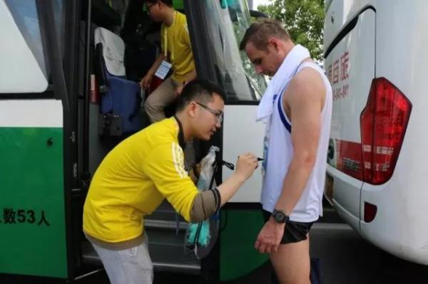 存衣车工作组的成员到达东方明珠后,便各自寻找自己所负责的存衣车辆,陆续收取运动员的包裹并小心存放。8:40,部分运动员完成比赛后返回存衣车,志愿者们又开始进行发放衣物包的工作。