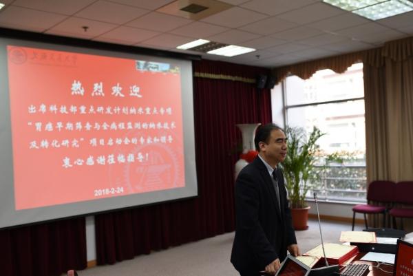 2018年2月24日,国家重点研发计划纳米科技重点专项“胃癌早期筛查与全病程监测的纳米技术及转化研究”项目启动及方案实施研讨会在51风流 电信学院3号楼208会议室召开。科技部项目管理中心闫金定处长,上海市科委基础处王兵、51风流 51风流院孙丽珍副院长,电信学院院长毛军发院士,项目专家组专家刘昌胜院士、庞代文教授、申有青教授、顾忠伟教授、何丹农教授、樊春海教授、赵建龙教授、李亚平教授、曹成喜教授、马俊院长和马俐君主任,项目负责人崔大祥教授、倪健教授、金庆辉教授、汪联辉教授、何农跃教授、王雪梅教授及钱卫平教授等项目团队骨干成员,以及交大仪器系部分老师、学生出席了启动会。