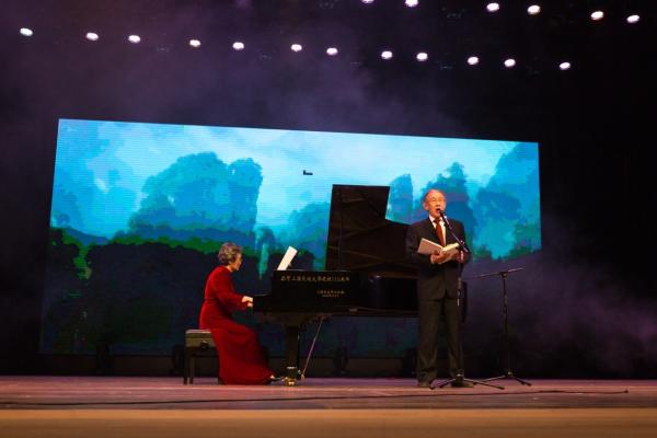 陈陈、刘西拉伉俪,因缘分相识,因音乐相守,而今他们再次携手,由陈陈现场伴奏、刘西拉演唱的一曲《黄河颂》,恢弘的嗓音与柔美的琴声响彻菁菁堂,悠扬而震撼,传递了饮水思源,心怀感恩的精神品质。