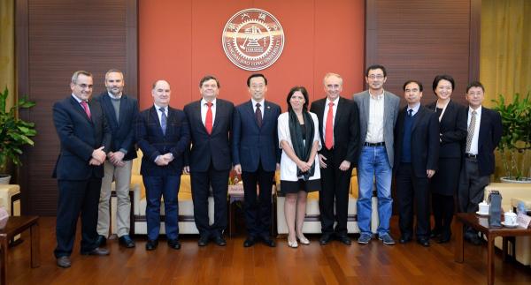 当日下午,萨拉戈萨校长代表团一行还在电院刘辉副院长的陪同下与张杰校长进行了会谈,双方均肯定了两校目前在纳米材料领域合作所取得的成就,并期待在更多领域的交流发展。会后,Lopez一行还参观了电院相关实验室,与电院相关负责人商谈合作。