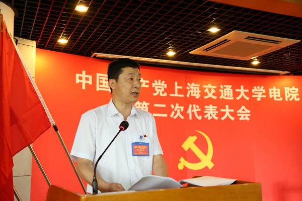 郭新立代表学校致辞,对电院第二次党代会的召开表示热烈祝贺,并对电院近年来所取得的成绩给予了充分的肯定,在交通大学创建世界一流大学的进程中交出了满意的答卷。同时,郭新立对即将产生的学院新一届党委提出了希望和要求:希望新一届党委班子树立攻坚克难的勇气与信念,争做深化改革的先行者,加强形势研判,优化工作部署,用好权力和资源,形成改革的整体合力;以提高办学治院能力为重点,加强学习型领导班子建设,坚持和完善党政联席会议制度,持续改良工作作风,让广大师生切实感受到成果和变化;主动适应新形势新任务新要求,深入推进服务型党组织的建设,大力加强制度建设,贯彻全面从严治党的新要求。