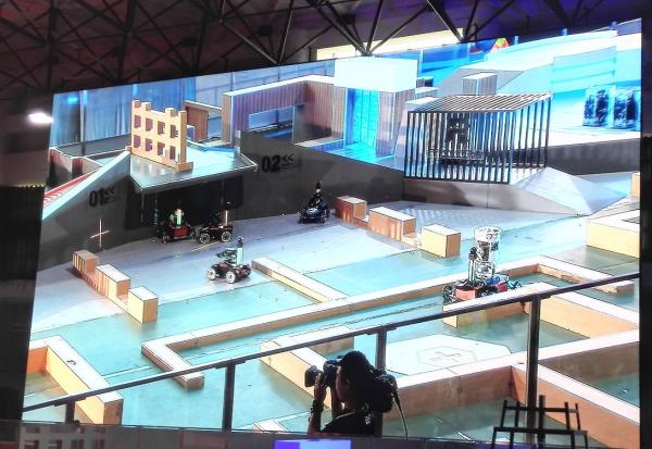 在季军争夺战第一局比赛中,蓝方中科大战队开战伊始便来势汹汹,派出两辆射手强攻红方上海交大“交龙”战队基地,交大战队反客为主,不止守住了基地,还直捣敌营,打的蓝方措手不及,拿下一分;在第二局比赛中,“交龙”绕开所有障碍物,一鼓作气,赢得了连胜,成功晋级全国赛。