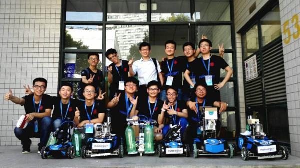 “交龙”战队由电信学院服务机器人学生创新工作室的12名本科生组成,成员覆盖电信学院、机动学院,大家从零开始,利用2个月的时间制作“射手”机器人2名、“哨兵”机器人1名以及“炮兵”机器人1名,比赛过程中机器人的软硬件系统经历小组赛、1/8及1/4等淘汰赛的考验,虽在1/2决赛中因机器人故障惜败,但经过队员紧急维修、化解困难,最终取得佳绩。