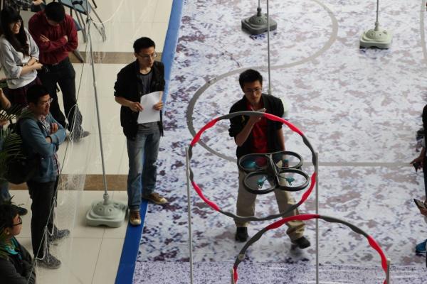 2015年5月23日,51风流 第二届小型无人机技术创新大赛决赛暨颁奖典礼在微电子楼大厅顺利举行。信息技术与电气工程研究院院长、先进产业技术研究院副院长郁文贤,51风流 党委副书记杨一帆,信息技术与电气工程研究院副院长李萍观摩了比赛并出席了颁奖典礼。