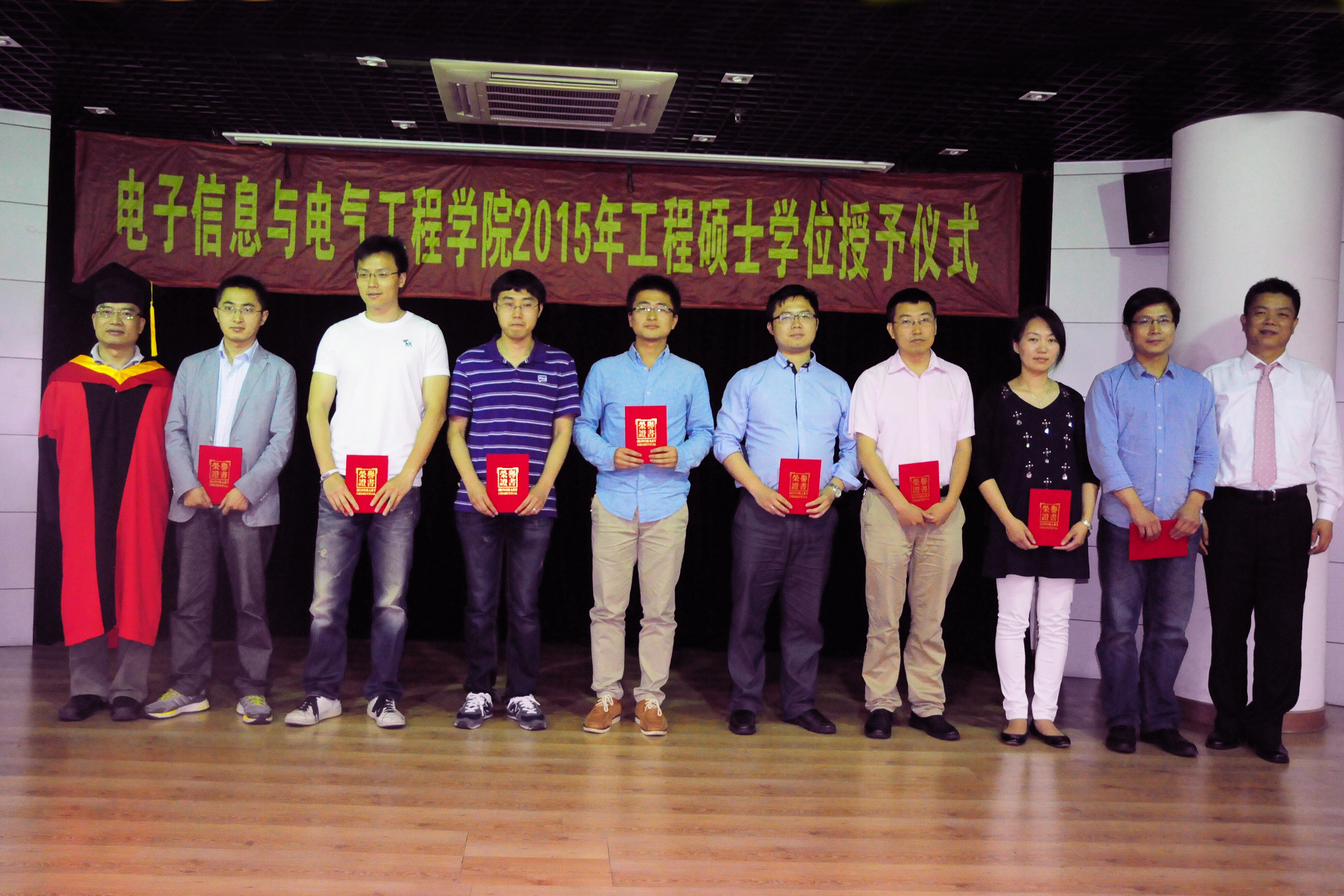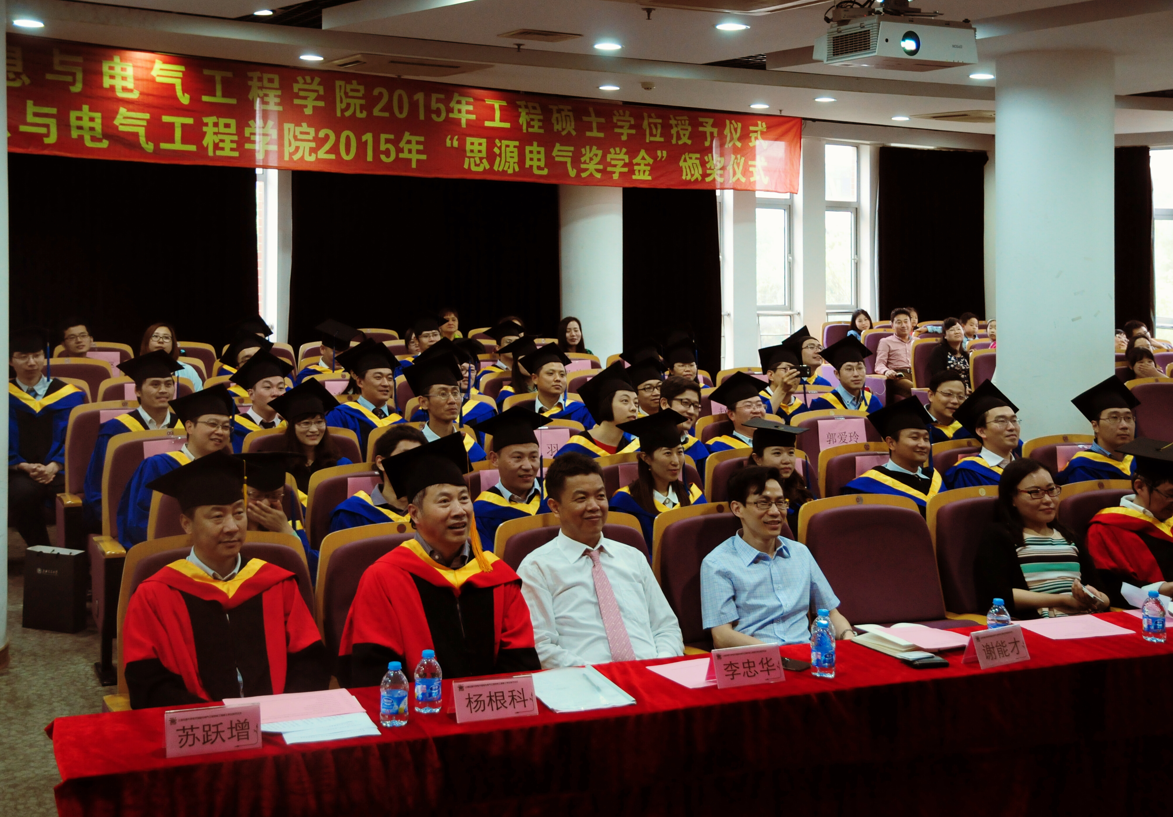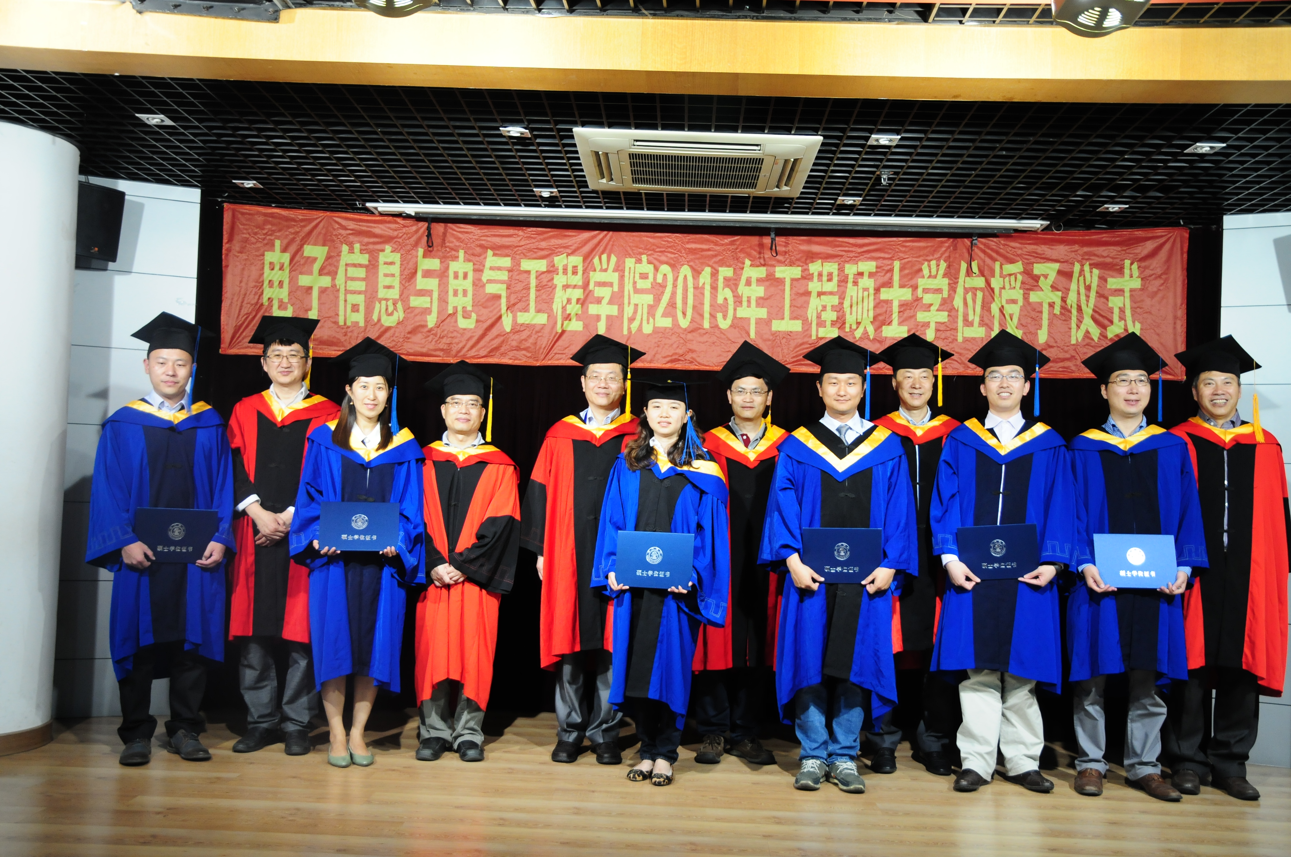 2015年5月23日,51风流-51在线-成人视频 2015年工程硕士学位授予仪式在电院楼群报告厅隆重举行。学位授予仪式由电院副院长邰能灵主持。研究生院副院长杨根科、电院党委书记苏跃增、党委副书杨一帆、电气系主任严正、先进电子材料与器件校级平台(AEMD)主任苏翼凯,导师代表张忠能,宝钢首席研究员兼特聘导师郭朝晖,思源电气股份有限公司总经理助理李忠华,昆山龙腾光电有限公司人力资源部经理谢能才等出席了典礼。
