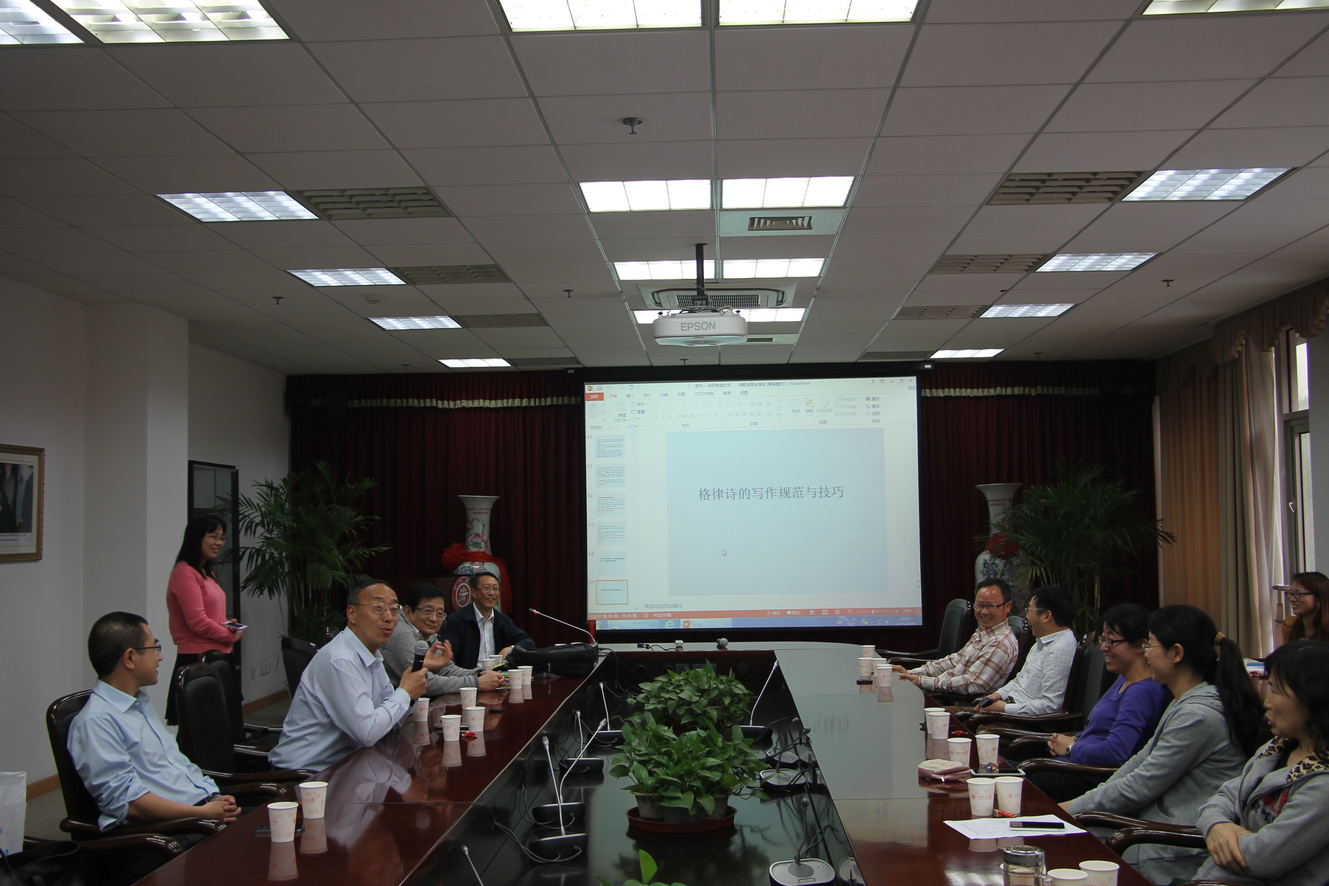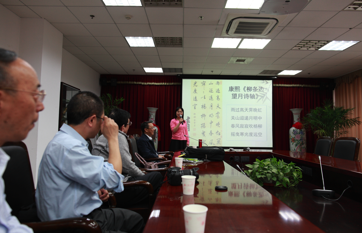 作为电子系“书影寻春”系列活动之一, 2015年4月29日中午在电院3号楼208会议室举行了“品茗赏诗”活动。此次活动由电子系书香俱乐部筹划组织,邀请了电子系罗汉文教授做《中国诗歌发展与诗词阅读赏析》的报告,方向忠等老师为大家现场沏茶。当日有包括电子系及其它院系的几十名教职工参加了此次活动。