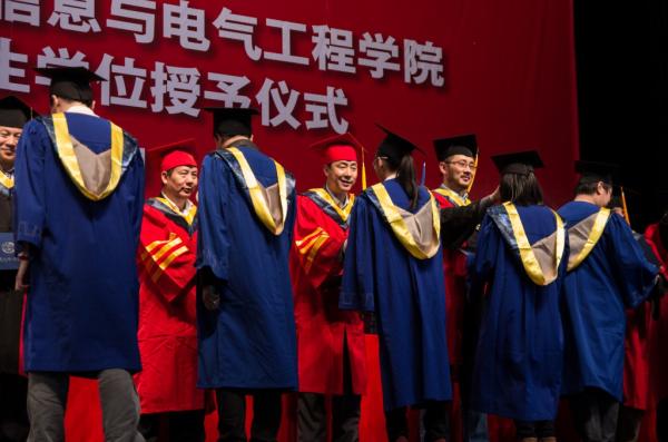 怀着激动的心情,全体毕业本科生身着硕士服,依次走上主席台,从院领导及导师们手中接过学位证书,和老师们共同见证他们求学历程中的收获和喜悦。