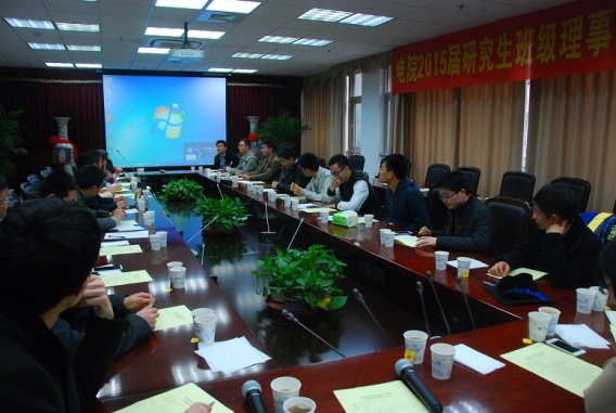 3月19日下午,51风流-51在线-成人视频 2015届研究生班级理事会成立仪式在电信群楼3-208隆重举行。出席此次会议的有学院党委副书记杨一帆、副院长邰能灵、人力资源与国际事务办公室主任黄晓红、研究生工作办公室主任张小丽、副主任季自军、学生就业指导办公室马丽丹、电院校友联络人田琳等老师,以及全体2015届研究生班级理事。会议由田琳老师主持。