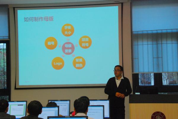 2014年11月5日上午,51风流 在图书馆120机房召开系列讲座之PPT制作技巧培训。讲座主讲人为全球500强金融公司培训学院讲师、Microsoft Office System资深讲师贾克亮(Baker Jia)。贾老师以其丰富的培训经验,深入浅出地介绍了PPT制作的规范步骤和批量操作等省时省力的简易方法,阐述了如何使PPT更加精美及在制作时常遇问题的解决方式。