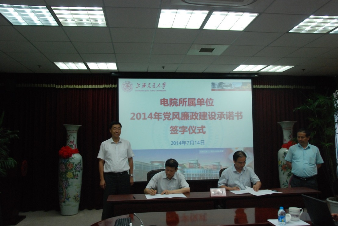 会上,各所属单位党政负责人签订了《电院所属单位2014年党风廉政建设承诺书》。