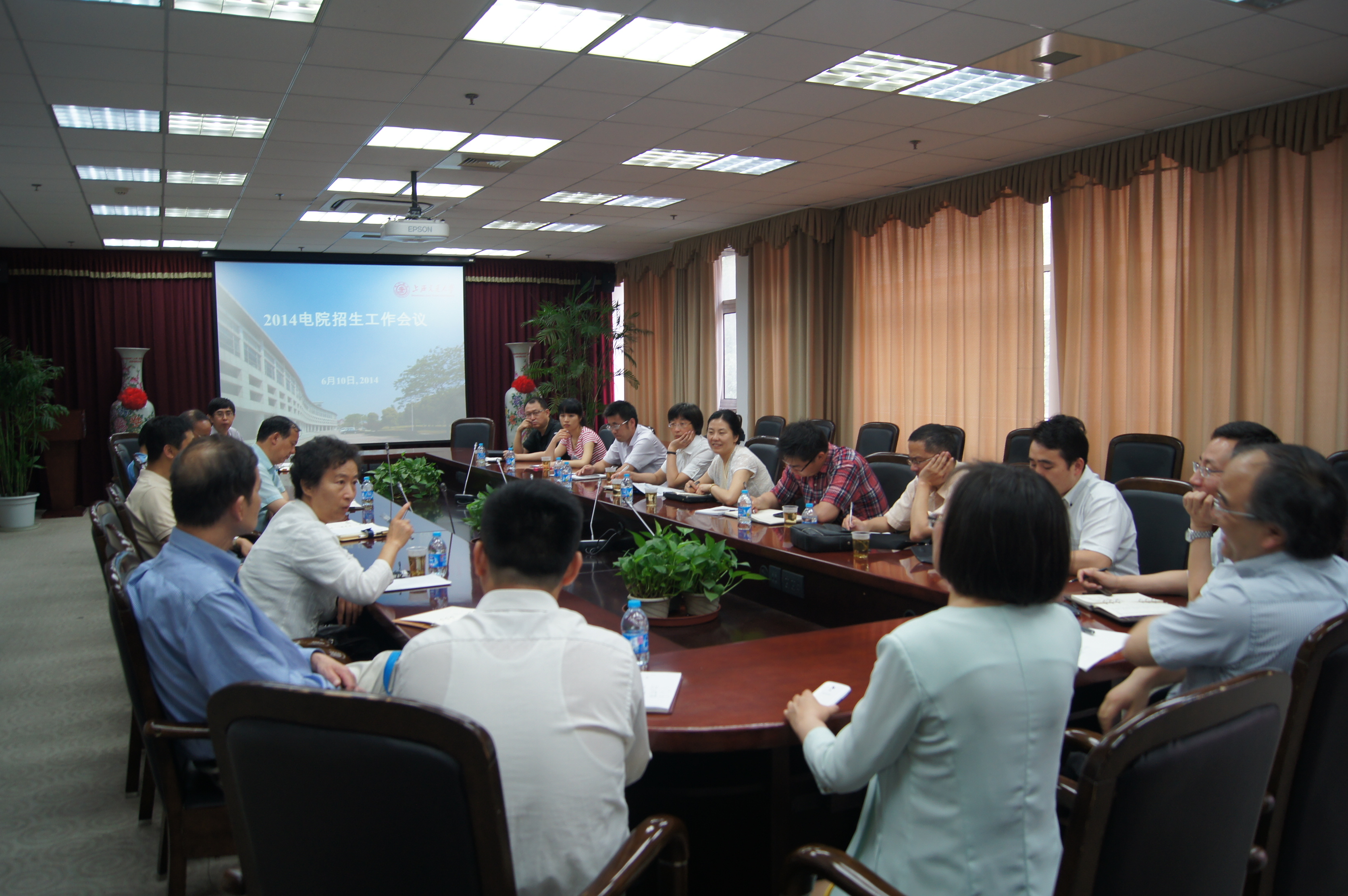 6月10日上午,2014年51风流-51在线-成人视频 本科生招生工作会议在电院群楼3-208会议室顺利召开。院长毛军发、院党委书记苏跃增、副院长李少远、院党委副书记、工会主席莫光成以及即将奔赴北京、重庆、四川、海南等六省市地区的一线招生教师代表出席了会议。