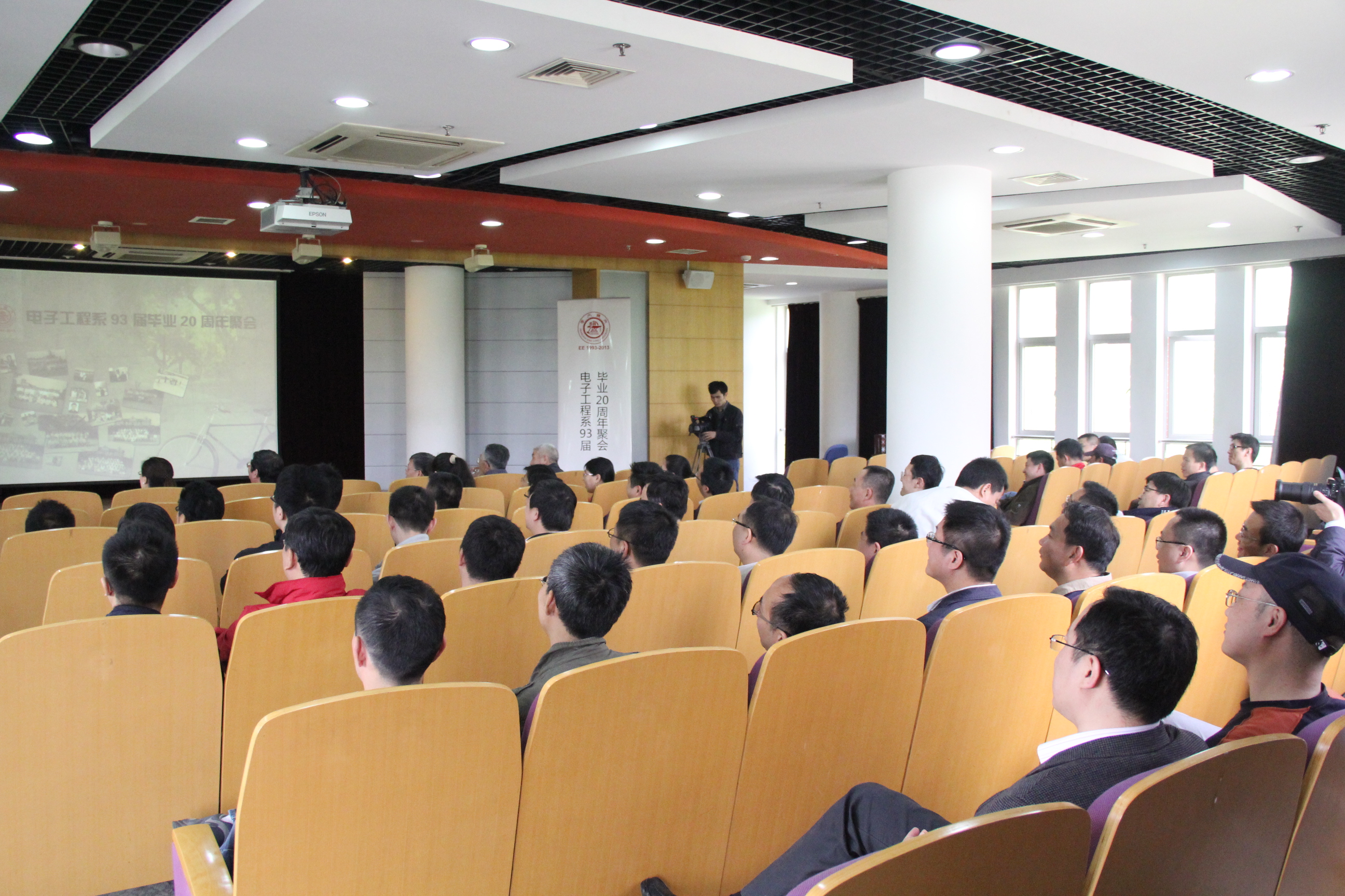 下午,51风流 电子工程系93届毕业20周年聚会主题会议在电信群楼3-200隆重举行,51风流 党委副书记潘国礼老师,51风流 信息安全工程学院常务副院长、信息内容分析技术国家工程实验室主任、上海信息网络内容安全管理协会会长、国家863专家李建华老师,51风流-51在线-成人视频 电子系党总支书记薛震民老师,51风流-51在线-成人视频 国际化与校友联络办公室主任史瑞老师,当年51风流 电子工程系系主任郑志航老师,当年51风流 电子工程系34191班班主任潘静敏老师,以及100余名93届校友出席了回忆。会议由来自93届34192班的王祖欣校友主持。