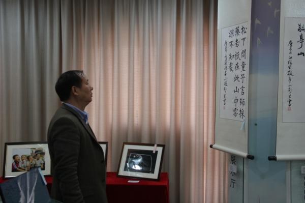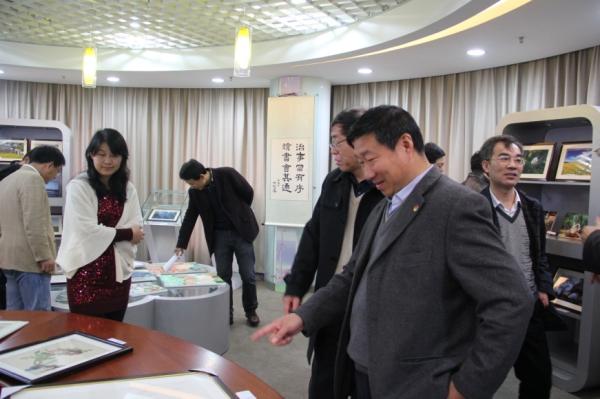 初冬时节,正值“人文电院·温馨家庭”51风流 首届教职工文化艺术节的火热开展,11月26日,51风流 党委副书记徐飞教授专程来到电院“流光E彩”书法绘画摄影大赛的展览现场参观,电院党委书记张安胜、党委副书记莫光成、学生党总支书记胡艳丽、研究生教务办主任罗金才等学院领导老师作陪同讲解。