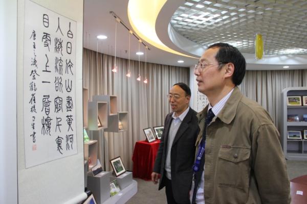 参观期间,徐书记饶有兴趣地流连于电院教职工老师们的得意作品前,细致端详,赞不绝口,表示希望电院能够组织将这些极有风韵和价值的作品作一动态巡展,在全校范围内进一步拓展影响,分享心怀。参观结束后,徐书记在留言簿上欣然写下“电院在全校带了一个好头”的真情心迹。