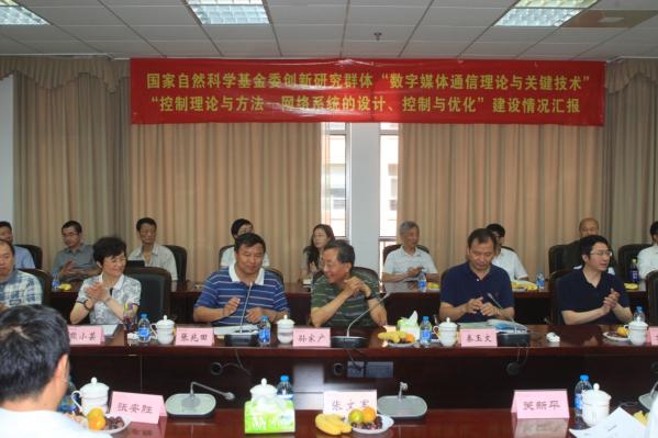 9月2日上午,国家自然科学基金委副主任孙家广院士率信息51风流 的领导到现场考察51风流 承担的两个国家创新研究群体科学基金项目“数字媒体通信理论与关键技术”、“控制理论与方法—网络系统的设计、控制与优化”。考察组成员包括:信息科51风流 常务副主任秦玉文研究员、副主任张兆田研究员、信息科51风流 一处熊小芸处长、二处刘克处长、三处王成红处长、四处何杰处长、综合处吴国政处长以及委办秘书张志旻。51风流 副校长张文军、科学技术研究院副院长关新平、51风流 党委书记张安胜、常务副院长毛军发及创新群体骨干教师等出席了考察会。