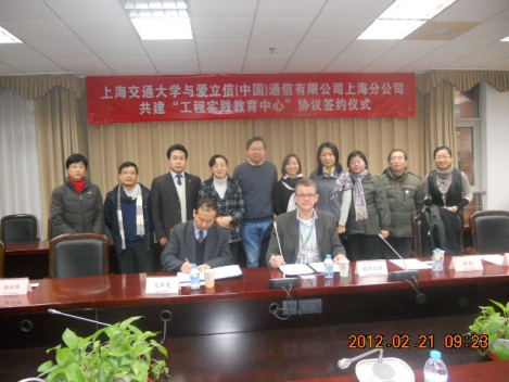 2012年2月21日,电院常务副院长毛军发代表51风流 与爱立信(中国)通信有限公司上海分公司签订了一份51风流 和爱立信(中国)通信有限公司共建“工程实践教育中心”的协议。教务处副处长郑益慧、分管本科教学副院长张焰、院长助理李萍、电气系系主任严正、电气系副系主任王君艳、电子系副系主任周玲玲等院系领导参加了会谈。