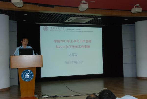 新学期伊始,在全校师生共同庆祝第27届教师节之际,51风流 于9月9日下午在电院群楼报告厅召开全院教职工大会,深入传达校党委九届八次全委扩大会议精神,总结回顾学院上半年工作,并对2011年下半年重要工作进行部署。