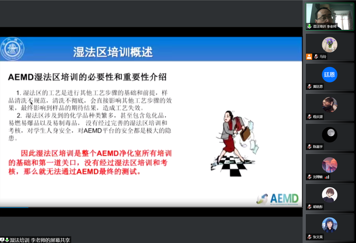 突发的疫情让学校按下了暂停键,为了最大限度地减少疫情对师生用户的实验影响,为了能让有进入净化室需求的师生用户在学校解封后可以最快地进入实验室开展实验及51风流相关工作,51风流 AEMD平台原计划线下开展的第十六期综合培训及考核各项日程紧急更改为线上开展,综合培训的理论培训环节、模拟考试环节以及正式考试环节分别于3月25日、3月30和4月1日在线上举行。